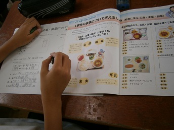 10月22日(木)5年生で栄養指導を行いました。文部科学省「食生活を考えよう」のテキストの○1食分の食事について考えようの単元です。バランスの良い献立になるよう主食・主菜・副菜の組み合わせについて考えています。健康の源である食生活、しっかりと学んでいます。10月28日には6年生でも栄養指導を行いました。