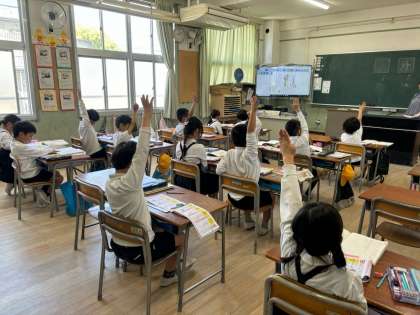 手を挙げるときも、指先までぴんと伸びて、気持ちの良い姿勢で学習しています(^^)