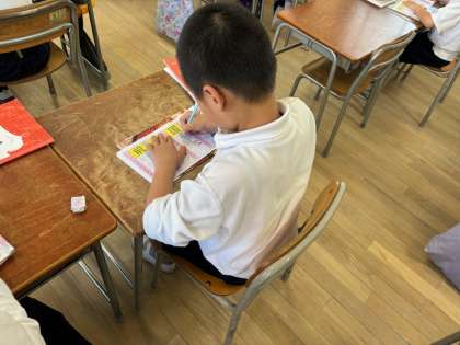 今日は国語科で「外」「国」という漢字を新たに学習しました。
