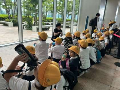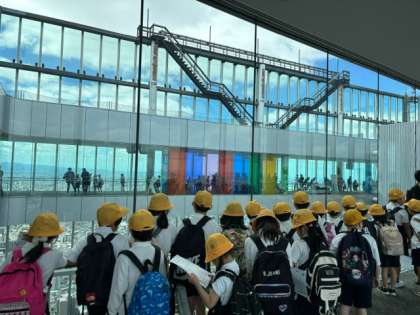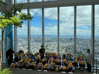 今日は、あべのハルカスへ社会見学に行きました。出発の時は少し曇っていましたが、だんだん晴れてきて、暑すぎない晴天になりました。