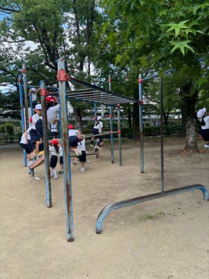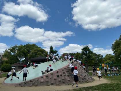 子どもたちにとっては身近な城北公園ですが、今日は1・2年生合わせて60名ほどのお友だちで遊んだり、グループに分かれて生き物探しをしたり、普段とはまた違った楽しみ方ができたのではないでしょうか(^^)