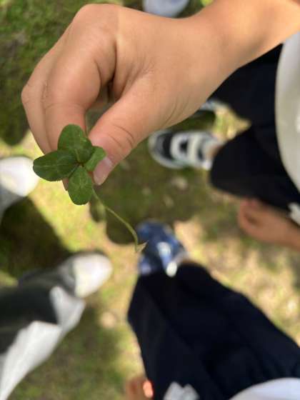 生き物探しでは、四葉のクローバーを見つけたり、イモリ?を見つけたり、たくさんの生き物が見つかりました。