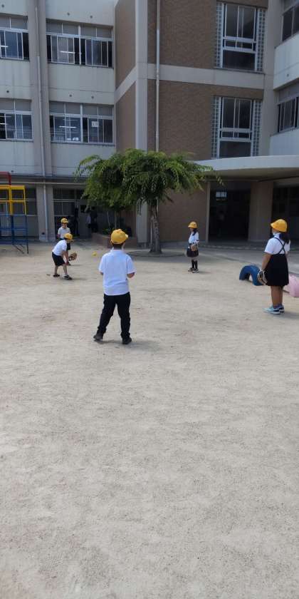 各学年で譲り合いながら、昼休みなどにキャッチボールを楽しんでいます。今日は4年生が使いました。