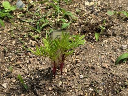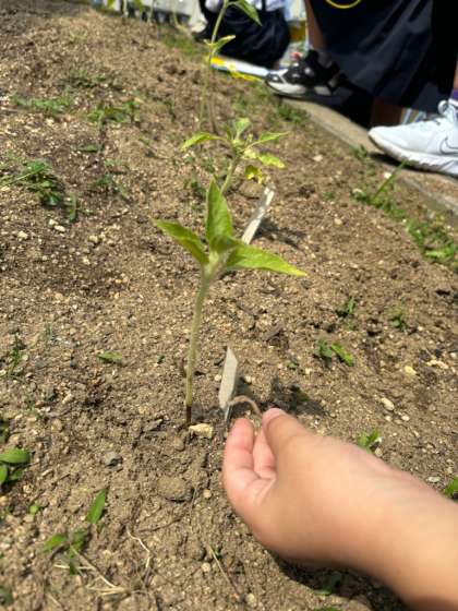 だんだんと大きくなり、ビニルポットでは窮屈になってきたので、先日学習園の花壇に植え替えました。