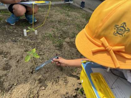 4月のはじめに、「マリーゴールド」「ヒマワリ」「ホウセンカ」の中から好きな植物を選び、育て始めました。