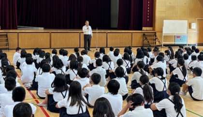 先週は「生活を明るくする週間」で、みんなが頑張ってあいさつをしていました。そのおかげで今朝もたくさんの人と元気なあいさつを交わすことができました。これからもお互いに続けてください。
