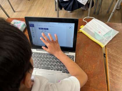 デジタルドリルでは、漢字の書き取りをしたり、計算問題に取り組んだり。