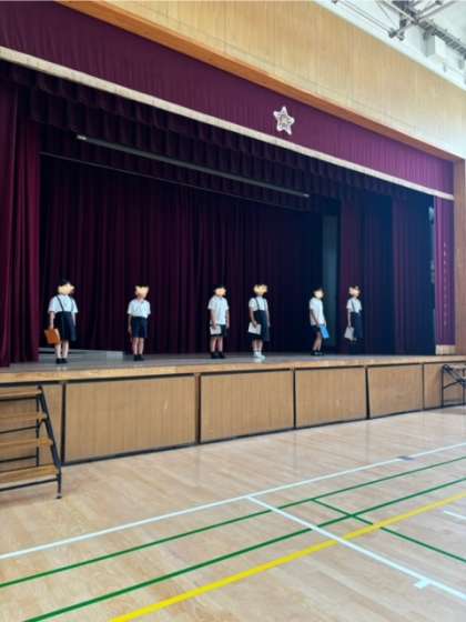学年から一人、1学期に頑張ったことをみんなの前で終業式に発表します。今日は放課後に残って、練習をしました。