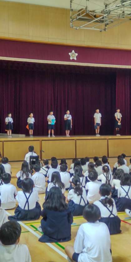 終業式では、4年代表の子が1学期のふりかえりを上手に発表できました。