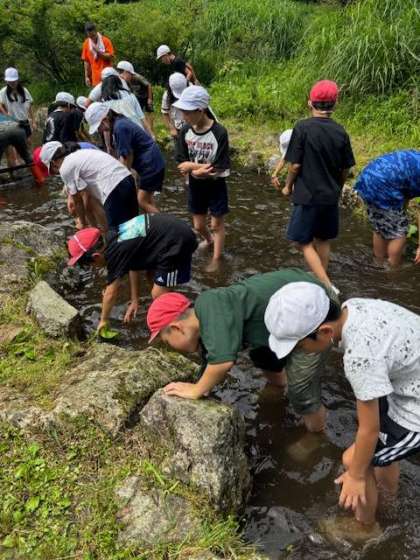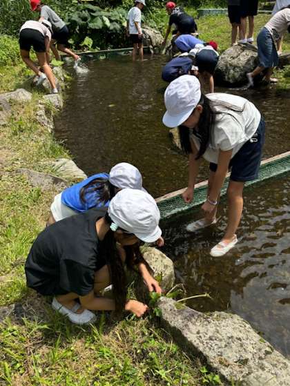あまごを捕まえています。水が冷たくて氷みたいです。塩焼きでいただきます。