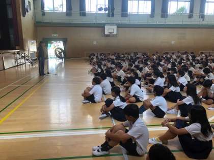 また、1学期の終業式でお話しましたが、夏休みの間、先生たちはいろんなお勉強を頑張ってやっていました。中心は皆さんがより良く、より深く、分かるようになる授業を作ることです。2学期にはいろんな授業で生かされているのですが、その一部をほかの先生に観てもらって、お互いに勉強を深めていくこともあります。他の先生が何人も見学されることがあっても、皆さんはできるだけ普段通りに学習することで、協力してほしいと思います。