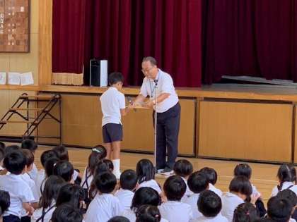 ○ 夏休み中に外部の活動で優秀な成績を収めた人の賞状を伝達披露しました。