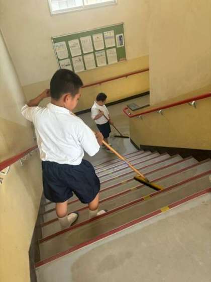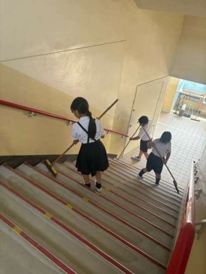 3年生の担当の掃除場所ではありませんが、今日はいつもよりも中央階段に砂が多く、掃除のお手伝いをしてくれました。