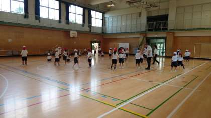 コグトレ棒を使った運動をしました。最初はなかなか取ることができなかった子も、つかむ場所の色をよく見て、何度も練習すると、取ることができるようになっていました。他にも、友達同士でコグトレ棒をパスする運動をしました。相手の子と呼吸を合わせてパスすること、相手に取りやすくパスすることなどを知り、次第にコツをつかんでできるようになっていました。