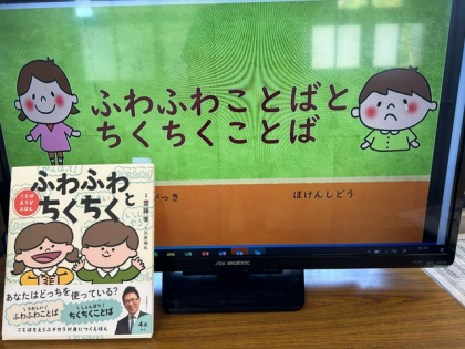 2学期の発育測定をしました。低学年は「ふわふわことばとちくちくことば」中学年は「リフレーミング」高学年は「ことばのいいかえ」について話をしました。低学年は絵本をみてどの言葉がふわふわことば、ちくちくことばかを勉強しました。中学年は短所だと思っている所が物のみかたによって、長所にもみえる話をしました。高学年は友達と話す際言葉のいいかたを考えて話すことが大事なことを話しました。