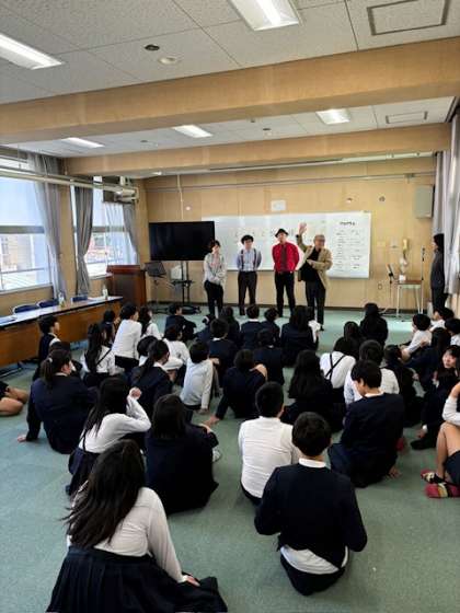 本日の午前中、5年生が「よしもと放課後クラブ 漫才ワークショップ」にチャレンジしました。吉本興業の方々をゲストティーチャーにお迎えし、漫才の授業を受けたり、実際に5年生が「二人一組」で漫才コンビを結成し、漫才に取り組んだりしました。子どもたちの一生懸命取り組んでいる姿が頼もしかったです。2時間笑って笑って笑ってとても楽しい時間を過ごすことができました。