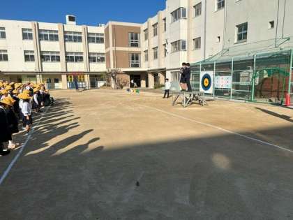 早寝、早起きに挑戦してみましょう。健康委員会の児童が児童朝会で全校児童に呼びかけていました。