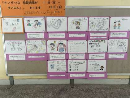 今週は保健週間です。保健週間チェックリストをつけて自分の生活習慣を見直しましょう。ゲームやスマートフォン等電子機器使いすぎていませんか?今週はメディア時間を減らして