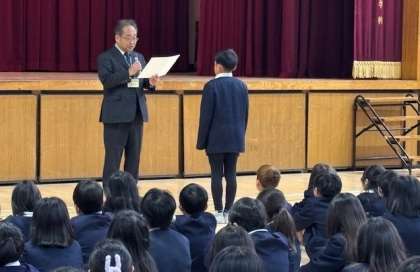 〇 「税」がテーマの作品作りで優秀賞だった人に賞状の伝達を行いました。