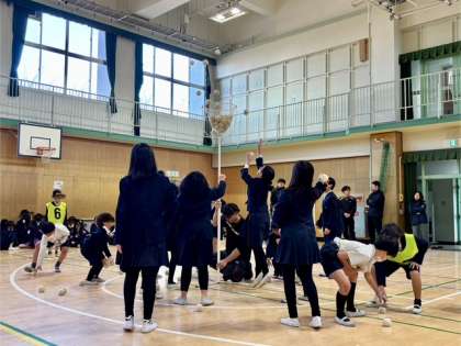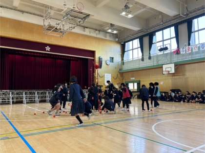 2月20日(木)の1時間目は、卒業を祝う会を行いました。スマイルキッズで玉入れをしたり、在校生からは、お祝いの言葉や歌のプレゼントをしたりしました。