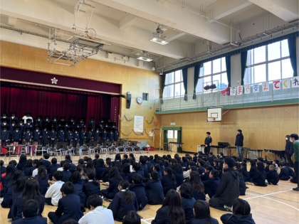 6年生からのお礼では、呼びかけや「語り合おう」の合唱や「タイムパラドックス」の演奏を聞きました。