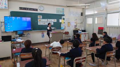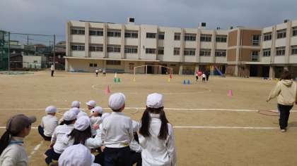 1年生もあと少し。英語や体育をしました。ネイティブの先生の英語での質問にも、しっかり英語で答えることができました。普段の英語の時間で、聞きなれることや話し慣れることで、上達しているようです。