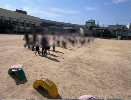 運動場で2年生の