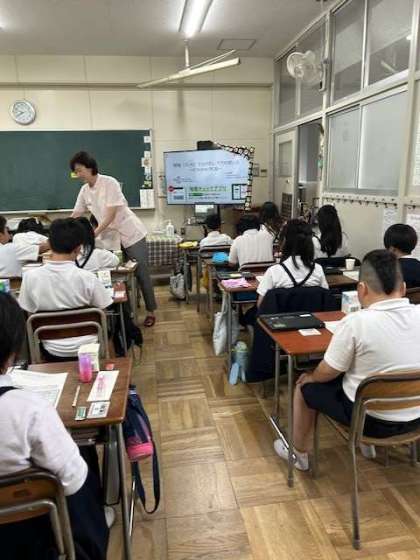 歯科衛生士さんが来てくださり、むし歯の原因やだ液の働きの話をしていただきました。その後、フッ化物洗口をおこないました。ガムを使って自分のかむ力も調べました。4年生は真剣に取り組んでいました。