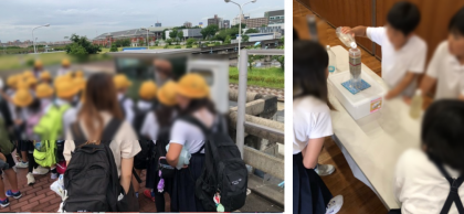 淀川の水が水道水になるまでの説明を受けた後、実際に子どもたちは汚れた水が飲み水に変化する実験を通して、浄水場の工夫について学習しました。