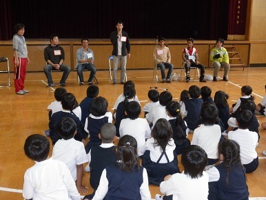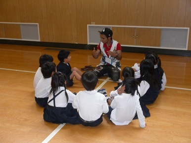 1年生が大阪工業大学留学生と交流会を行いました。自己紹介で名前を教えてもらったり、様々な言語の挨拶を教えてもらいました。じゃんけんゲームの後、輪になってそれぞれの国や地域のことを学びました。