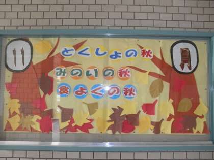 玄関掲示が変わっています。「みのりの秋」、さて学習に体力の増進に大きなみのりがありますように。