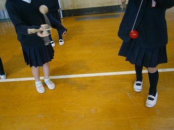 1月27日(金)1年生が老人会とのふれあいで昔遊びを行いました。竹とんぼ、けん玉、あやとり、コマ回し、お手玉、おはじき、けんけんぱなどです。身近な伝統文化を地域の皆さんに教えていただきました。とても楽しかったです。ありがとうございました。