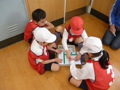 児童は作戦を立て、協力し合いながら行動しました。達成感を持って試合をすることができました。