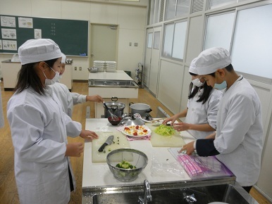 5年生が調理実習を行いました。ゆで野菜のサラダ(卵入り)です。家でも家族にふるまってくださいね。