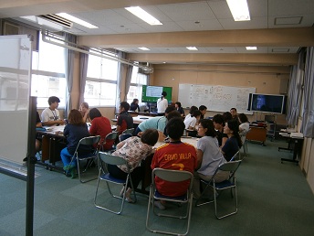 6月2日(金)授業改善に向け、本年度の研究授業・研究協議会がスタートしました。算数科3年目です。講師に大阪市立阿倍野小学校吉田恵美子校長先生をお招きしました。第1回目は5年生「形も大きさも同じ図形を調べよう」の単元です。研究主題は「わかる」「できる」「楽しい」算数科学習—基礎基本の定着をめざして—です。めあては「合同な三角形のかき方を使って、合同な平行四辺形のかき方を考えよう。」です。タブレット、大型テレビを使って考え方を発表しました。写真の1枚目2枚目は授業中の様子、2枚目は研究協議会での班別討議の様子です。