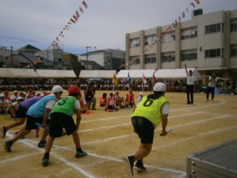 10月1日(日)、快晴の秋空のもと、予定通り平成29年度の運動会を行いました。児童会で決めた「全力で 力を合わせて 最後まであきらめずに がんばる運動会」のめあてのもと、すべての児童が全力で団体演技・団体競技・個人走・リレーなどに取り組み、力を発揮しました。一人ひとりが輝く運動会であったと思います。多くの保護者・ご家族・地域の皆様に来校して頂きました。子どもたちに温かい声援を頂戴し、まことにありがとうございます。写真は6年生のリレー出発時の写真です。
