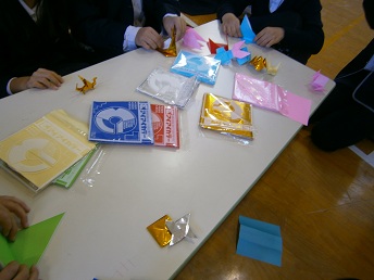 はじめの歓迎セレモニーでお互いの校長先生と児童代表があいさつを交わしました。本校の児童は法被を着用してソーラン節を披露したり、音楽の演奏で歓迎の気持ちを伝えました。ユソク小学校からはオカリナの演奏やチアリーディングの踊りが披露されました。その後、折り紙や羽子板など日本の遊びをいっしょにしました。短い時間でしたが、打ち解けた雰囲気で仲良く遊びました。ユソク小学校の校長先生から美しい学校で、児童も礼儀正しくたくさんの国際交流してきた中で最も感動しましたとお褒めの言葉を頂きました。
