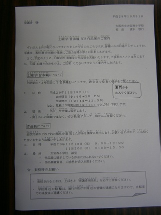 明日11月18日は土曜授業です。学習参観および作品展を行います。児童の力作がそろっています。たくさんのご参加お待ちしています。