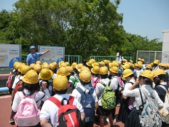 4年生が5月13日(火)に柴島浄水場に社会見学に行きました。阪急千里線「柴島駅」を下車し、淀川河川敷まで移動し、淀川大堰や毛馬水門を見た後お弁当を食べました。その後柴島浄水場に移動し、浄水施設を見学したり砂や活性炭を使って浄水の実験を行いました。水道水のありがたさをあらためて実感しました。楽しくわかりやすく案内していただいた柴島浄水場の皆様ありがとうございました。