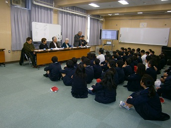 2月26日(月)、5年生が地域の老人会の皆様を講師としてお招きし、戦争体験の聞き取りをしました。大阪大空襲や戦時中の食糧にも困った生活など2限目(9:40〜10:25)と3限目(10:45〜11:30)連続で思いのこもったお話を聞かせて頂きました。少し難しいところもありましたが、平和のありがたさや平和への思いを引き継いでいくことの大切さを学びました。