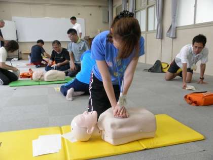 教職員で救急救命研修会を行いました。心肺蘇生の手順を確認し、一人ひとりがひとつひとつ練習をしました。プール指導も始まりましたので、緊張感と危機意識を共有しながら日々取り組んでいます。