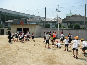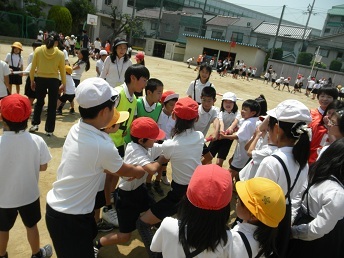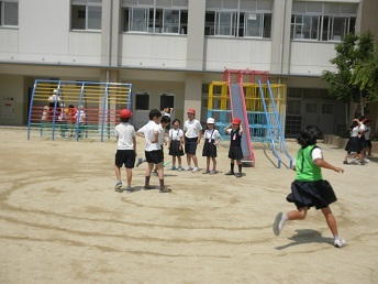 5月29日(木)の20分休みにキッズタイムを行いました。異学年グループによる体を動かす活動です。○5mダッシュ○棒引き○しっぽとり○玉入れ○長なわ○だるまさんがころんだ○うずまきじゃんけん○はないちもんめ○けんけんずもう○フラフープ○ハンカチ落としです。1年生から6年生まで仲良く楽しく体を動かしています。
