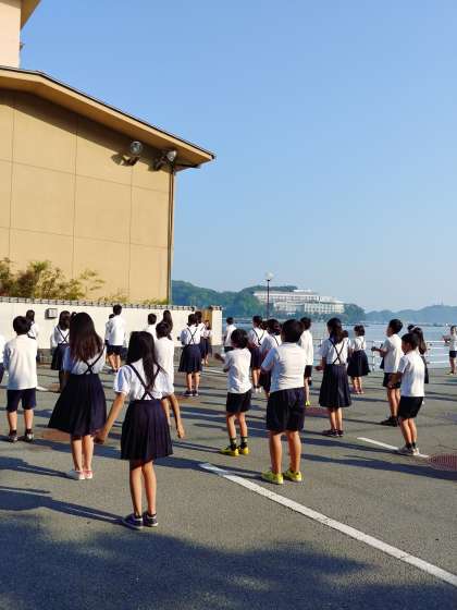 ちょっと眠そうに朝の会中です。子どもたちからは「お腹すいた」の声がたくさん聞かれます。今から朝食です。