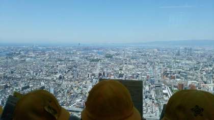 大阪湾の向こうに、うっすらと淡路島まで見えています。