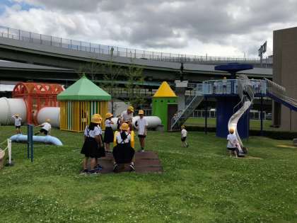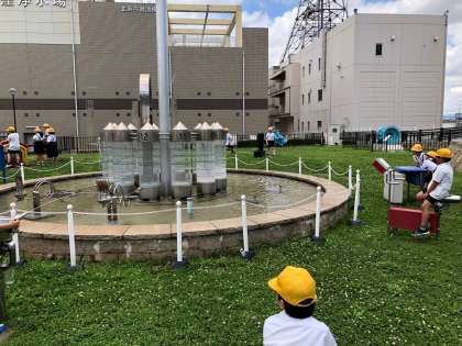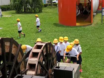 見学の後、浄水場内にある、水が出たり水で遊べたりする遊具のある「きらら水広場」でおもいきり遊びました。