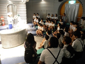 6月12日(木)、5年生は「大阪ガス ガス科学館、泉佐野漁業協同組合 青空市場」に校外学習に行きました。大阪ガス ガス科学館では「エネルギーを学ぼう」のテーマでマイナス196度の液体窒素を用いた冷熱実験など見たり、参加体験型の展示物に触れたり映像やクイズでエネルギーや地球環境について学びました。青空市場では新鮮な魚をお店の人とやりとりをしながら買いました。スーパーの切り身しか見たことがなかったのに、100円や200円に魚をまけてもらい、大満足でした。「競り(せり)」を見て、その迫力にもびっくりしました。1日でたくさんのことを体験し、学びました。