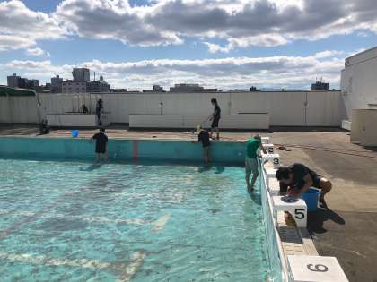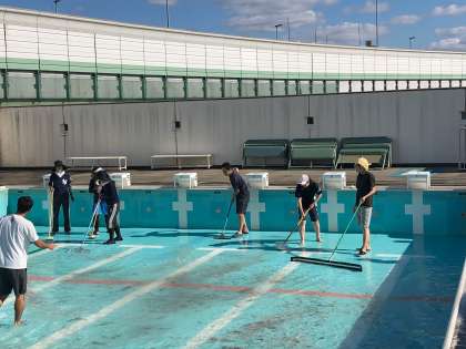 来週からのプール水泳に向けて、教職員総出でプール清掃を行いました。1年ぶりの汚れをキレイに取り去って、来週から、気持ちいいプールでたっぷり泳ぎましょう!
