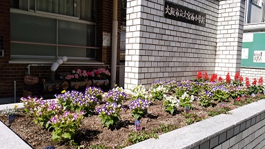 玄関の花が入れ替わりました。管理作業員さんありがとう。きれいに咲いています。