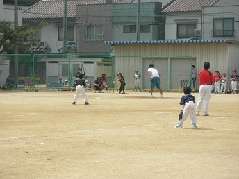 6月15日(日)、本校校庭にて中宮子ども会キック・ソフト大会が行われました。キックベースボールの試合を1回、ソフトボールは低学年の部、その他と1回ずつ行いました。低学年から高学年の児童まで、それぞれ各町会のユニホームを着て、精一杯プレーしました。保護者、子ども会の担当者、連合会長、各町会長等たくさんの大人が、子どもの応援に指導に参加されました。地域の子どもたちを大切に思い、その成長を楽しみにしてくださっています。ありがとうございます。(2枚目の写真は始球式です)