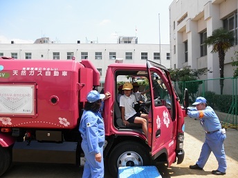 本日大阪市環境局から講師をお招きし、環境学習を行いました。パッカー車のしくみについて知り、運転台にも乗せてもらうなどの体験をしました。とてもうれしくて歓声があがりました。続いて多目的室で、環境問題特にごみの分別について学びました。環境に負荷をかけないためにどのようにして分別するのかについて具体的に教えていただきました。楽しく真剣に学びました。